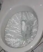 A "toilet plume" is the dispersal of microscopic particles into the air as a result of flushing a toilet. Normal use of a toilet by healthy people is considered unlikely to be a major health risk.[31] There is indirect evidence that specific pathogens such as norovirus[32][33] or SARS coronavirus[34] could potentially be spread through toilet aerosols, but as of 2015 no direct experimental studies had clearly demonstrated or refuted actual disease transmission from toilet aerosols.[35][36] It has been hypothesized that dispersal of pathogens may be reduced by closing the toilet lid before flushing, and by using toilets with lower flush energy.[35][37]