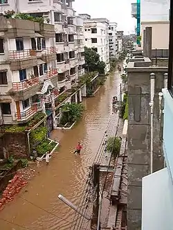Among 11 cities participating in performance benchmarking in 2006–07, none provided water continuously to all customers. According to the benchmarking data, the city with the shortest supply per day was Bagerhat with 2 hours and the city with the longest supply was Dhaka with 23 hours, followed by Manikganj and Chandpur with 20 hours.[4] Within cities, the duration of supply often varies, as it does between seasons. Major water shortages in Bangladesh occur during the dry season.[23] As of 2011, however, intermittent supply was common in at least parts of Dhaka, forcing families to purchase drinking water and use pond or river water for their other needs. Regular power cuts, which turn off well pumps, also contribute to the intermittency of supply.[24]