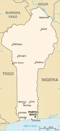 {{cite journal}}: Cite journal requires|journal=(help), p. 4 - Office International de l'Eau (OIEAU). "Alimentation en eau potable et assainissement en milieu rural au Bénin" (in French). Retrieved 2008-05-21.