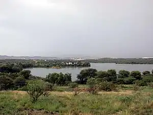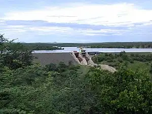 Many of the ephemeral (seasonally flowing) rivers of the Namibian interior are dammed and, according to the FAO, provide a 95%-assured yield of 96 million m3/year, based on historical rainfall data. These dams have low safe yields in comparison to their total volume, because of uneven flows over time and high evaporation losses. Thus only about half the water from ephemeral rivers is usable. There is surplus water in some dams, e.g. in the Oanob Dam, the Hardap Dam, the Naute Dam and the Friedenau Dam.[8] This surplus water cannot be used because of the remote location of these dams and the comparatively limited local demand.