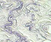 Weigert's elastic stain is a combination of stains used in histology which is useful in identifying elastic fibers. Often orcein or a combination of resorcinol and fuchsine are used for staining. For counterstaining cell nuclei nuclear fast red or hematoxylin is also used. After applying elastic fibers show up blue coloured while cell nuclei gets red or blue.