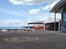 The Auckland helicopter at its base in Mechanics Bay.