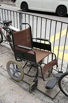 A wheelchair is a chair with wheels, used when walking is difficult or impossible due to illness, injury, problems related to old age, or disability.