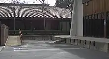 Some elements of the outdoor public realm present barriers to wheelchair use, such as grade-separated areas where no ramps are provided. UK guidance recommends a minimum width of 1.5m for a wheelchair user and an ambulant pedestrian to move side by side; with maximum ramp gradients of 8% for manual wheelchair use (5% is preferred).[27]