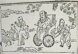 Depiction of Chinese philosopher Confucius in a wheelchair, dating to ca. 1680.