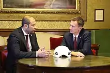 In 2018, Anglican vicar Andrew Ashdown, along with Church of England and House of Lords figures such as Lord Carey of Clifton and Michael Nazir-Ali, visited Syria and met with Assad; Ashdown accused the White Helmets of being militants, and accused the group of "keeping an injured Syrian child untreated and covered in dust and blood" for propaganda purposes.[129][130][9][131][132] A UK Foreign Office memorandum criticized the trip, warning that it would be exploited by Assad.[130]