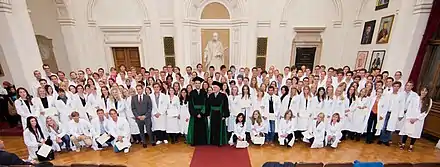 On February 28, 2011, the Faculty of Medicine at the Università del Piemonte Orientale "Amedeo Avogadro" in Novara became the first Italian medical school to introduce a white coat ceremony for its third-year students.[19]
