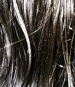 White piedra is caused by Trichosporon beigelii.[5][6] White piedra can occur on the hair of the scalp; Trichosporon ovoides is likely the cause in this case.[7] White piedra on scalp hair is rarely caused by Trichosporon inkin; pubic hair with white piedra is what T. inkin is mainly associated with.[8] White piedra can occur on pubic hair; T. inkin likely causes this.[7]
