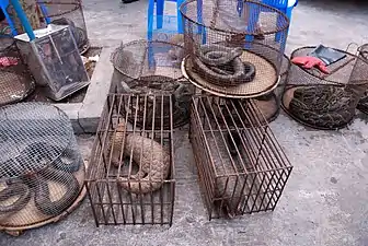 Due to unhygienic sanitation standards and the connection to the spread of zoonoses and pandemics, critics have grouped live animal markets together with factory farming as major health hazards in China and across the world.[28][29][30][31] In March and April 2020, some reports have said that wildlife markets in Asia,[32][33][34] Africa,[35][36][37] and in general all over the world are prone to health risks.[38]