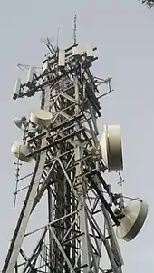 Next generation 5G cellular networks, which began deploying in 2019, use higher frequencies in or near the millimetre wave band, 24 to 52 GHz.[8][9] Millimetre waves are absorbed by atmospheric gases so 5G networks will use smaller cells than previous cellular networks, about the size of a city block. Instead of a cell tower, each cell will use an array of multiple small antennas mounted on existing buildings and utility poles. In general, millimetre waves penetrate less deeply into biological tissue than microwaves, and are mainly absorbed within the first centimetres of the body surface.