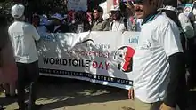 - 2017: Members of the Sustainable Sanitation Alliance (SuSanA) used the momentum around World Toilet Day in 2017 to update Wikipedia articles on WASH-related topics.[37] This contributed to public education about the sanitation crisis.[38] The documentary "Follow the Flush," released 19 November 2017, educated people about what happens beneath the streets of New York City after a person flushes a toilet in Manhattan.[39] In the lead-up to World Toilet Day 2017, communities worldwide came together for sanitation-themed "Urgent Runs". More than 63 events were held in 42 countries. Events included fun runs, awareness walks, toilet cleaning programs, carnivals and even motorbike parades.[40] Countries participating include: Bangladesh, Benin, Bhutan, Burundi, Cambodia, Cameroon, Canada, China, Congo-Brazzaville, France, Gambia, Germany, Ghana, India,[41] Indonesia, Italy, Kenya, Mongolia, Mozambique, Namibia, Netherlands, Pakistan, Philippines, Senegal, Tanzania, United States and Vietnam.[42][40]