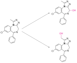 | Metabolites | Alpha-hydroxyalprazolam, 4-hydroxyalprazolam, beta-hydroxyalprazolam |