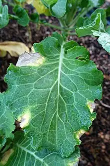 Further investigation of pathogenicity profiles and multilocus sequencing typing suggests that the list should actually be further narrowed down to just three pathovars with the different symptoms being black rot, leaf spot, and bacterial blight.[3] That said, Xanthomonas campestris pv. campestris is commonly known for causing black rot of crucifers, and Xanthomonas campestris pv. incanae has the ability to impact ornamental brassica plants through bacterial blight. Both of these pathovars are vascular pathogens, and they have been found to invade the plant host through wounds or hydathodes. Alternatively, Xanthomonas campestris pv. campestris also has the ability to infect the plant host through the stomata. Xanthomonas pv. raphani has been found to enter the plant through its stomata to cause infection of the tissue, or rather parenchyma. This results in bacterial spot on a wider range of hosts, which includes both crucifers and certain solanaceous plants.[1][3]