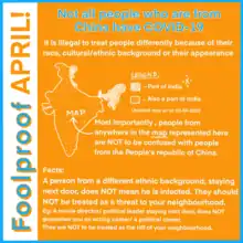Many protesters in Hong Kong have reportedly insisted on calling COVID-19 the "Chinese Virus" or "Chinese coronavirus".[60] Expats and South Asian minorities have also faced increased xenophobia, with media narratives blaming them as more likely to spread the virus.[61][62]