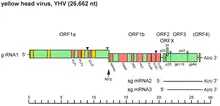 Yellowhead disease (YHD) is a viral infection of shrimp and prawn, in particular of the giant tiger prawn (Penaeus monodon), one of the two major species of farmed shrimp. The disease is caused by the Yellow head virus genotype 1 (YHV1), a positive-strand RNA virus related to coronaviruses and arteriviruses.