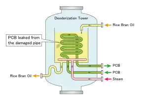- "Contamination of rice bran oil with PCB used as the heating medium by leakage through penetration holes at the heating coil tube in deodorization chamber". Hatamura Institute for the Advancement of Technology. Retrieved 2007-12-11.