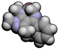 Zolazepam[2] (Flupyrazapon) is a pyrazolodiazepinone derivative structurally related to the benzodiazepine drugs, which is used as an anaesthetic for a wide range of animals in veterinary medicine. Zolazepam is usually administered in combination with other drugs such as the NMDA antagonist tiletamine or the α2 adrenergic receptor agonist xylazine, depending on what purpose it is being used for. It is around four times the potency of diazepam (0.32 mg/kg versus 1.2 mg/kg in animal models) but it is both water-soluble and un-ionized at physiological pH meaning that its onset is very fast.[3]