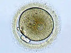 ![]() Zygote formation: egg cell after fertilization with a sperm. The male and female pronuclei are converging, but the genetic material is not yet united. | |