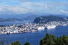 Ålesund is also a regular port of call for many cruise ships, which dock just south of the old city centre. There are two berths, right next to one another, and all cruise ships use the same exit, which is just a few minutes from the bus station in the city centre.
