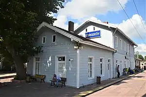 The 🌍 railway station is 2 km east of town centre.