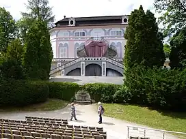 - 🌍 Revolving auditorium. Open-air theatre with a revolving auditorium placed in the chateau gardens with view on the Bellaria villa.
