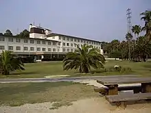 - 🌍 Kyukamura Okunoshima (休暇村大久野島), ☏ +81-846-26-0321 (Japanese). 63 traditional Japanese rooms and two Western-style rooms. There are separate sex onsens. Although it is tempting to just visit for a day, the island is very peaceful at night. The hotel has a large public hot spring bath with beautiful views over the surrounding ocean. A buffet style breakfast (07:30-09:00) and dinner (18:00-20:00) can be eaten at the hotel restaurant, including plenty of fresh local seafood. Pool (in summer), tennis court, table tennis, Karaoke room, tea lounge, laundromat, newspaper stand, souvenir shop ¥10,200 per person breakfast and dinner included, shared bath/shower.