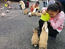 Ōkunoshima (大久野島) is a small island located in the Inland Sea of Japan. It is also known as Usagi Shima (うさぎ島, "Rabbit Island") because of the numerous feral rabbits that live here and it is for that reason that draws many people here. Nobody knows for sure how the rabbits got here. Some say they are the result of a scientific testing while others theorize that some children on a school trip left the original settlers here.