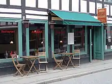 - 🌍 Bro Cafeen (Bro Cafe), Frederiks Allé 61 A (at the Frederiksbroen bridge), ☏ +45 86 12 86 11. M-Th 11:00-22:00, F Sa 11:00-01:00, Su 11:00-18:00. Claimed by some to be the oldest værtshus in Aarhus still in operation, Bro Cafeen has presumably served thirsty guests since 1899. Nice old-fashioned bright yellow townhouse at an excellent location right at the central Frederiksbroen bridge. Outside terrace, dart, and occasionally live music.