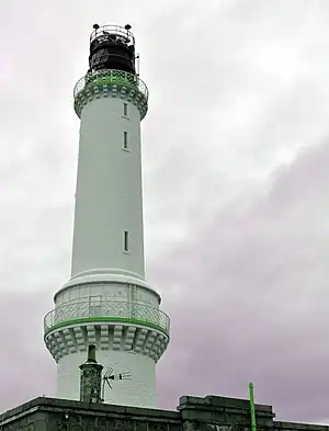 - π Girdle Ness is the headland south of the Dee estuary. Torry Battery guarding the harbour entrance was built in medieval times. In 1860 it was re-fortified against no-one in particular, and got to fire its guns just once, in 1941, against two friendly approaching vessels that failed to identify themselves. The Ness ends with the 1833 Stevenson Lighthouse, which has a range of 25 miles and was automated in 1991. Nigg Golf Club plays on the Ness, see below.