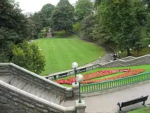 - π Union Terrace Gardens, Union Terrace AB10 1NJ. A small city-centre park and sunken garden on one side of Union Terrace. A small river, the Denburn, used to flow here but is now covered by the railway. The gardens are a haven of tranquility and greenery in the city-centre - in summer look out for the floral coat of arms, and in warm weather citizens sunbathe and picnic on the lawns. All year round, the gardens give a good view of the surrounding architecture. From 2010 the park was threatened with grandiose redevelopment plans, but in 2012 the council scrapped this idea. A more modest plan was undertaken for Β£28.3 million and the park was closed from 2019 -2022. Free.