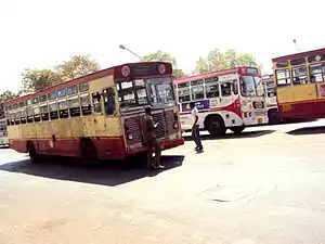 Gujarat State Road Transport Corporation (GSRTC) has buses from all the parts of the Gujarat state entering into the city. The central bus terminus at Geeta Mandir, with other terminals at Subhash Bridge and Naroda; minor stops include Paldi and Sabarmati Tollnaka. It is advisable to pre-book seats due to the likelihood of crowding.