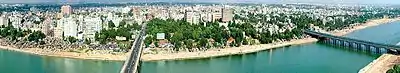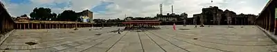 The city was built in an open and spacious plain to the east of the Sabarmati River. It included a smaller known fort as Bhadra Fort. The city wall had twelve gates. The city gradually expanded in every direction, with well laid out beautiful buildings, lakes and mosques on both sides of the river.