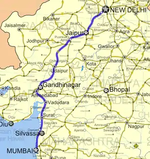 | Routes through Ahmedabad |