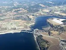 The E16 runs west to Bergen and east to Kongsvinger ending up in Gävle, Sweden. While the E16 runs just north of Oslo through Hønefoss and Oslo airport, there is, confusingly, also a branch of E16 between Hønefoss and Sandvika where E16 is connected to E18.