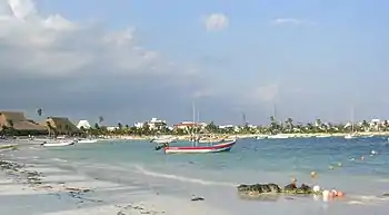 Akumal has a beautiful bay with a wide white sand beach, wonderfully warm blue-green water and great snorkeling. Cute little town with several restaurants.