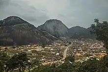 - π Idanre Hill Peak (take Akure-Idanre Road out of Akure to location). Located about 25 km outside of Akure, this popular hiking destination allows you to ascend 667 steps to an elevation of nearly 3000 feet, among dome-like hills that are steeped in folklore and listed as a tentative UNESCO World Heritage Site due to its presence of prior human habitation. Here you can find the Owa's (king's palace), Belfry, Old Court, Agboogun footprint, shrines, etc., and the scenery is really quite awe-inspiring. You may have to pay a "guide" at the entrance, but there is no need to book ahead.