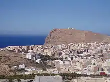 Al Hoceima is a city on the northern edge of the Rif Mountains and on the Mediterranean coast. It's a known tourist destination despite its small size. It is characterised by its shining sandy beaches like Cala Iris, Bades, Torres, Quemado, and Tala Youssef, and its mountainous rocky areas. It has a population of about 57,000 people.