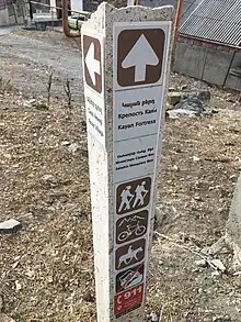 - Sanahin to Haghpat. Follow any of the paths from one monastery to the other. The shortest trail with least distance on paved roads is 9 km and takes about 2-3 hr. It takes you through the steep gorges, a small mountain river and the village Akner. If you follow the official path, be careful going down to the mountain river; one of the water pipes has a leak and the steep incline is very slippery. Also, just close to Haghpat when climbing into the valley, there are two options. One leads you down far to the bottom where the road and trail intersect. Another one is slightly longer but remains on similar altitude avoiding the steep climb going around'ish the gorge south of it.