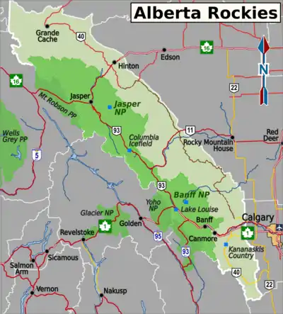 The Icefields Parkway (Highway 93) runs north/south through the region.