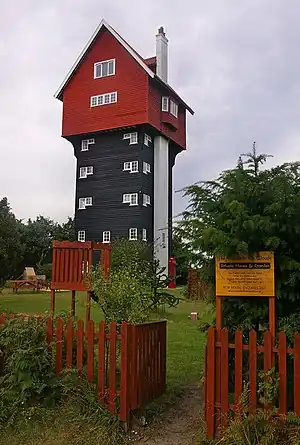 - 🌍 House in the Clouds is a fantastical 1910 creation. The neighbourhood was being made over into an "olde worlde" holiday village, but it needed modern amenities like running water, and a couple of ugly towers and tanks to boost the water pressure. One became a standard stone tower, but the other was disguised as a house perched atop an apartment block. The water tank was removed in 1979 and the entire tower has been converted into accommodation, sleeps 10+1. Lots of stairs, no lift.