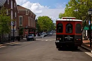 King Street Trolley operates a free transportation service from the King Street metro station to the waterfront. These black and red rubber tire trolleys are free and will stop at any one of the signs for the trolley stops along King street.