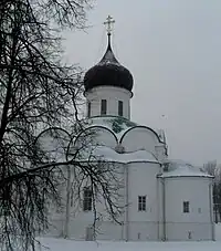 - Further buildings: church of Theodore Stratelates (надвратная церковь Феодора Стратилата: 1682, over-the-gate), church of the Presentation (церковь Сретения Господня: 1682, a small stocky building in Russian style), living chamber (келейный корпус: 1682, rebuilt in 19th century), and a number of small buildings from 18th – 19th centuries. These buildings are pretty regular, since they were constructed after the decay of the prince residence, as regular churches and houses in a regular monastery.