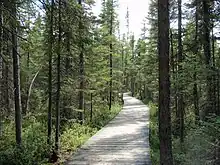 - 🌍 Spruce Bog Boardwalk (Hwy 60). An easy 1.5 km (0.93 mi) flat loop, with sections of wooden boardwalk, takes walkers and birdwatchers across Sunday Creek into the bog.
