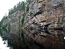 The winding maze of lakes and rivers is thanks to the glacier that retreated 11,000 years ago, reshaping the land and leaving sand, soil, and gravel as ice several kilometres thick melted. Wide valleys were once deep rivers of melting glacier water. Bluffs are visible along rivers where erosion has washed away softer rock, leaving a steep cliff of harder granite, for example, along at 🌍 Hemlock Bluff Trail. Faults create deep valleys with creeks and rivers, most notably along the Barron Canyon.
