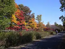The Fred Meijer Heartland Trail, a paved converted railroad line, connects Alma to the hamlets of Elwell and Riverdale to the west. It is expected that the trail will soon be completed between Riverdale and Edmore, which will make the trail one of the midwest's longest uninterrupted paved trails, reaching from Alma to Greenville. Area residents frequently utilize the trail for bicycling, jogging, walking, and inline skating.
