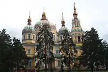 - 🌍 St Nicholas Cathedral (Никольский собор.), Ulitsa Baytursynov (3 blocks north of Baykonur Metro, next to Nikolsky Bazaar.). It was built in 1909. It was used as a barn for Soviet cavalry horses but was eventually restored and reopened as a church in 1980. Main entrance is west side from Baytursnov, but there's also a little gate from the park just south.