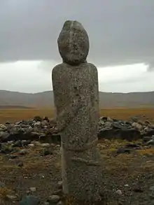 The Altai Mountains have been inhabited for around 12,000 years. The oldest images in the park are from 11,000 to 6,000 BC with hunting large mammals and ancient cultures. Thousands of years of petroglyphs show the transition from hunter-gatherer to pastoralism and later to the current semi-nomadic that developed over the last 3,000 to 4,000 years. Around 4,000 years ago, the use of horses and domestication of animals led to the rise of the Blue Turks (whose language is the root of Kazakh and Turkish). These successful warriors left upright carved stone statues known as Turkic Stone Men spread over the Altai Mountains.