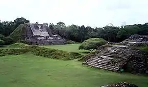 Altun Ha are the ruins of an ancient Maya city in Belize, in the Belize District about 30 miles (50 km) north of Belize City and about 6 miles (10 km) west of the shore of the Caribbean.