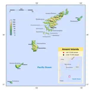 The Amami Islands (奄美諸島 Amami-shotō) are a small archipelago south of Kyushu, Japan.