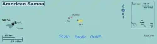 American Samoa is a U.S. territory in the South Pacific Ocean that lies about 100 km (60 mi) east of its neighboring country of Samoa, which is part of the same archipelago.